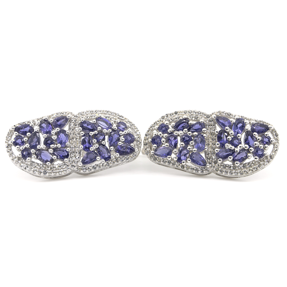 Серебряные серьги 925 пробы 15,22 гр. с танзанийским иолитом и топазами из США 7,68 карат