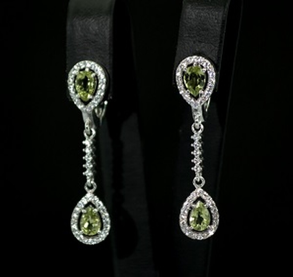 Серебряные серьги 925 пробы 5,16 г с египетскими Перидотами и фианитами 2,74 карат