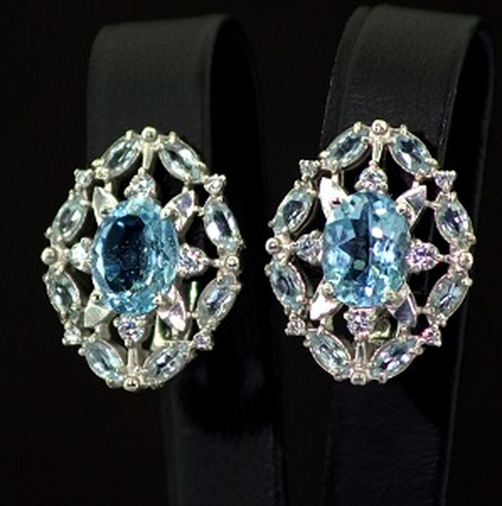 Серебряные серьги 925 пробы 7,16 г с голубыми Топазами и фианитами 4,75 карат