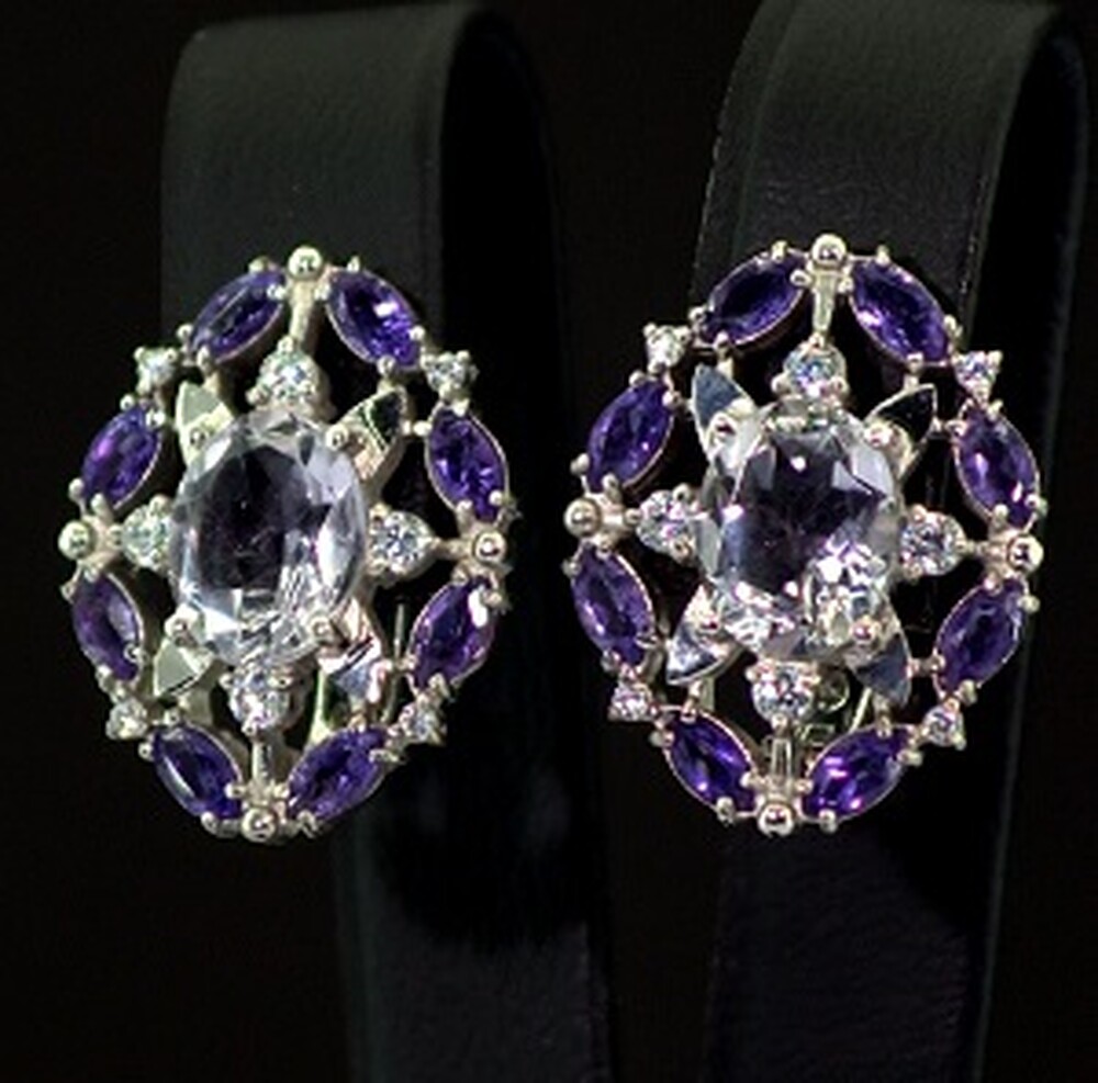 130695Серебряные серьги 925 пробы 6,91 г с боливийскими Аметринами, бразильскими аметистами та фианитами 5,49 карат 130695 7226₴ 3613₴2 BTQ Цвет ФиолетовыйПроба Серебро 925 Вставки АметистСеребро