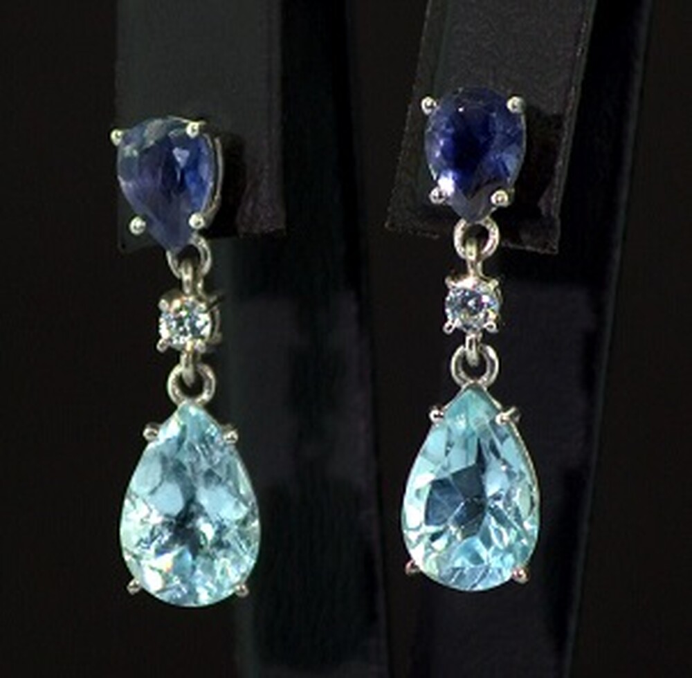 Серебряные серьги 925 пробы 5,15 г с голубыми Топазами, Іолітами и фианитами 8,82 карат