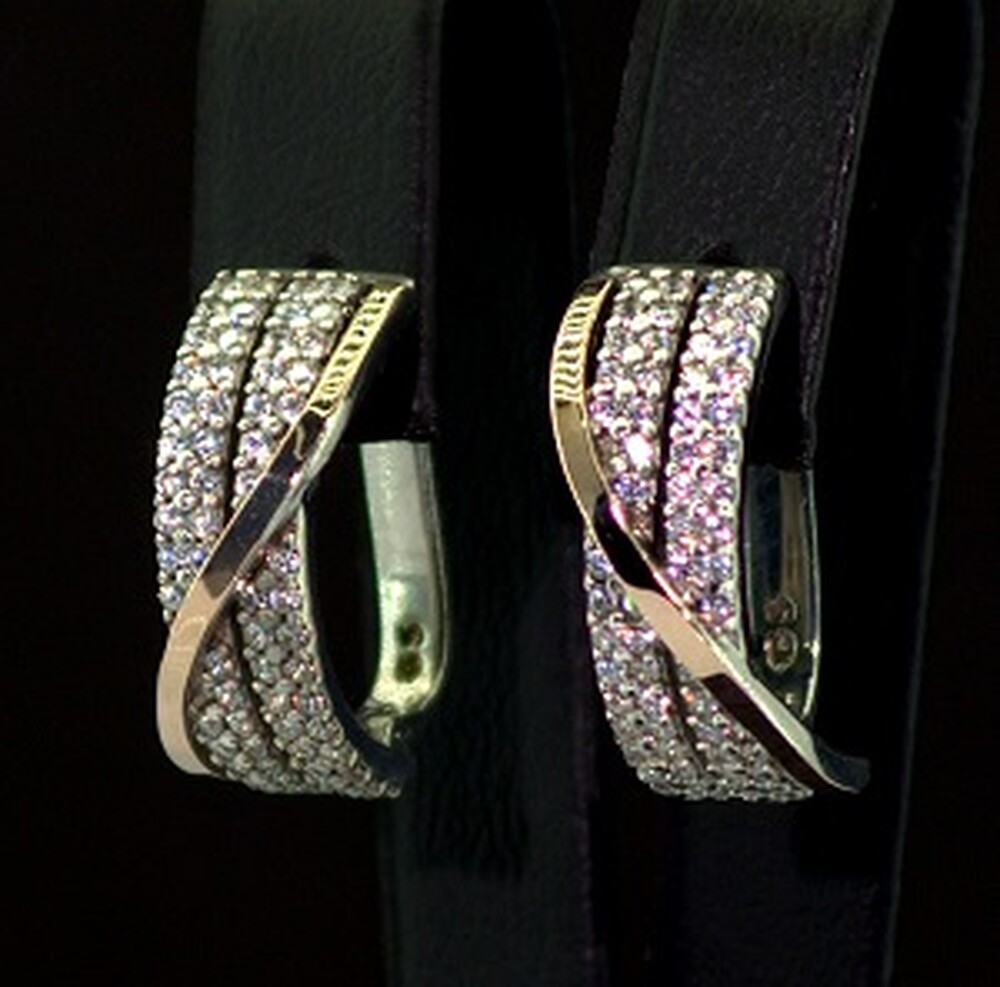 Серебряные серьги 925 пробы с позолотой 375 пробы 7,55 г с белыми Фианитами 2,25 карат