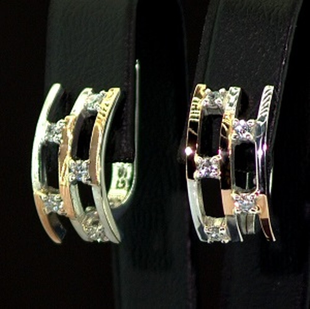 Серебряные серьги 925 пробы с позолотой 375 пробы 3,9 г с белыми Фианитами 0,6 карат