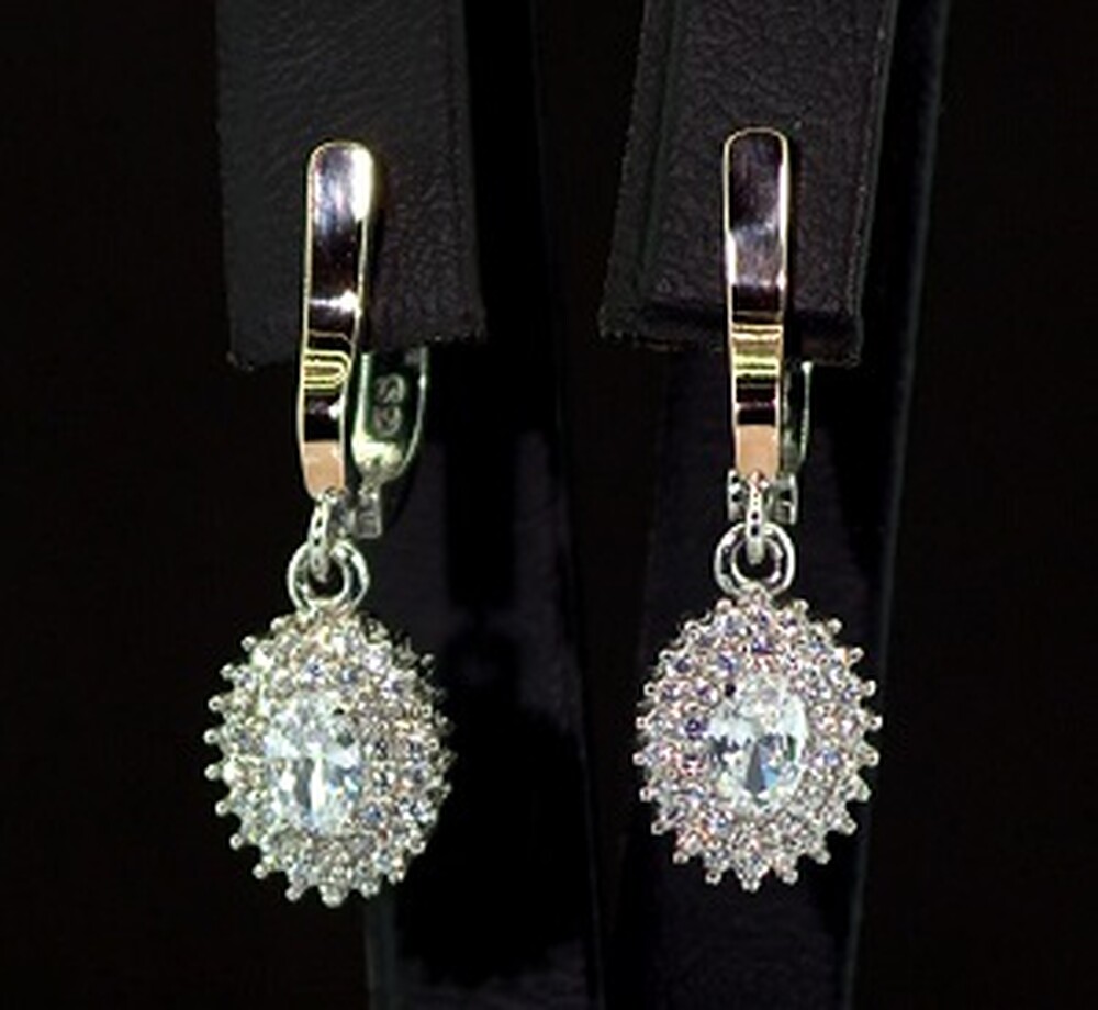 Серебряные серьги 925 пробы с позолотой 375 пробы 4,85 г с белыми Фианитами 4,9 карат