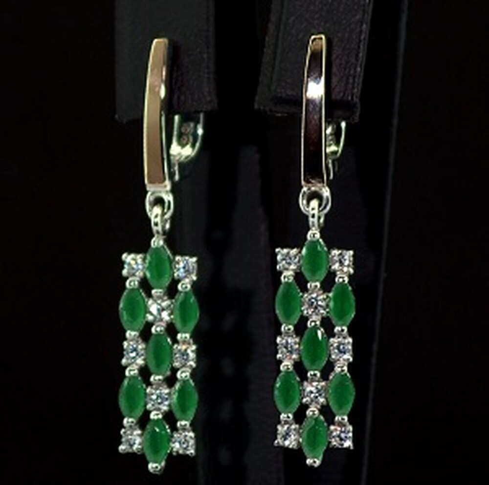 Серебряные серьги 925 пробы с позолотой 375 пробы 4,71 г с зелеными та белыми Фианитами 4,5 карат