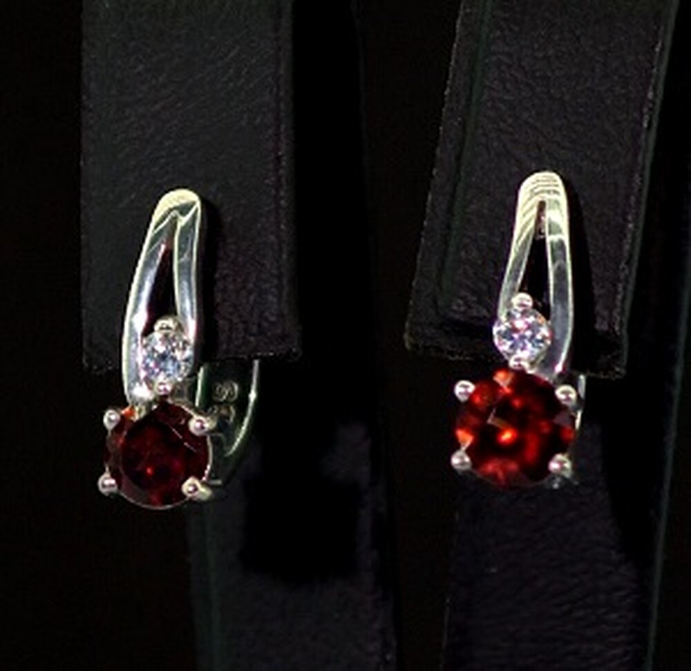 Серебряные серьги 925 пробы 3,29 г с чеськими Гранатами и фианитами 1,31 карат