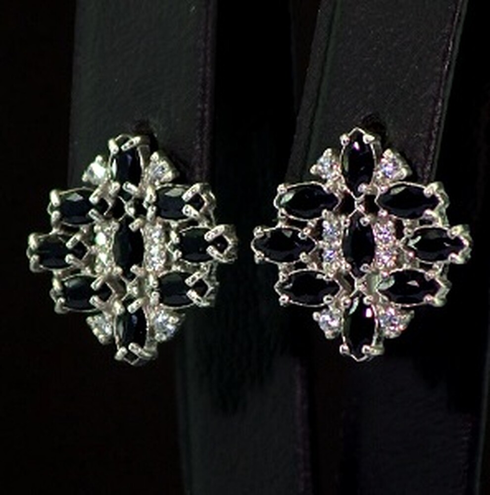 Серебряные серьги 925 пробы 3,06 г с в'єтнамськими Сапфірами и фианитами 3,54 карат