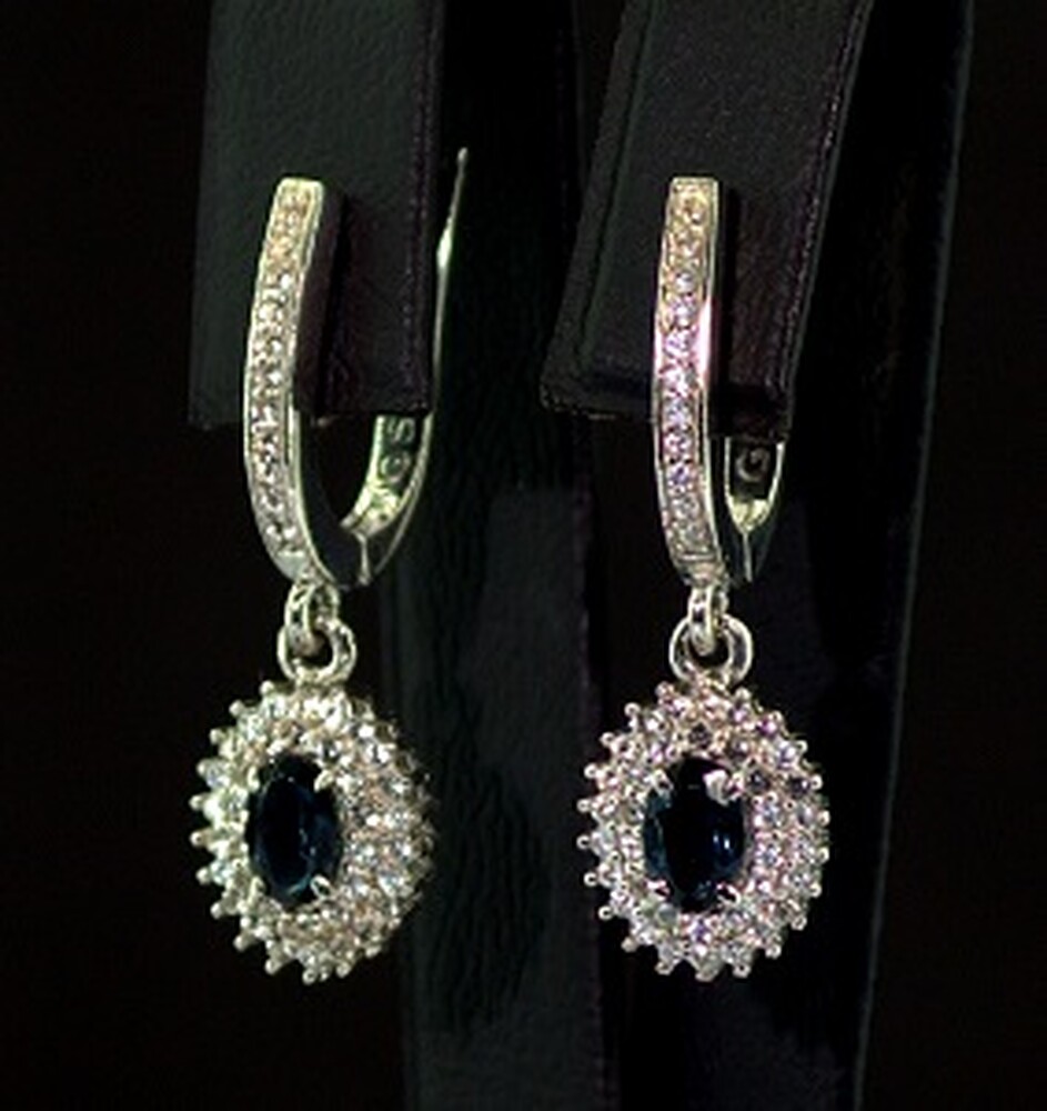 Серебряные серьги 925 пробы 5,3 г с Топазами Лондон Блу та фианитами 2,1 карат