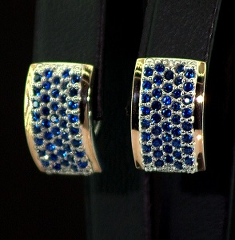 Серебряные серьги 925 пробы с позолотой 375 пробы 5,22 г с синими Фианитами 3,2 карат