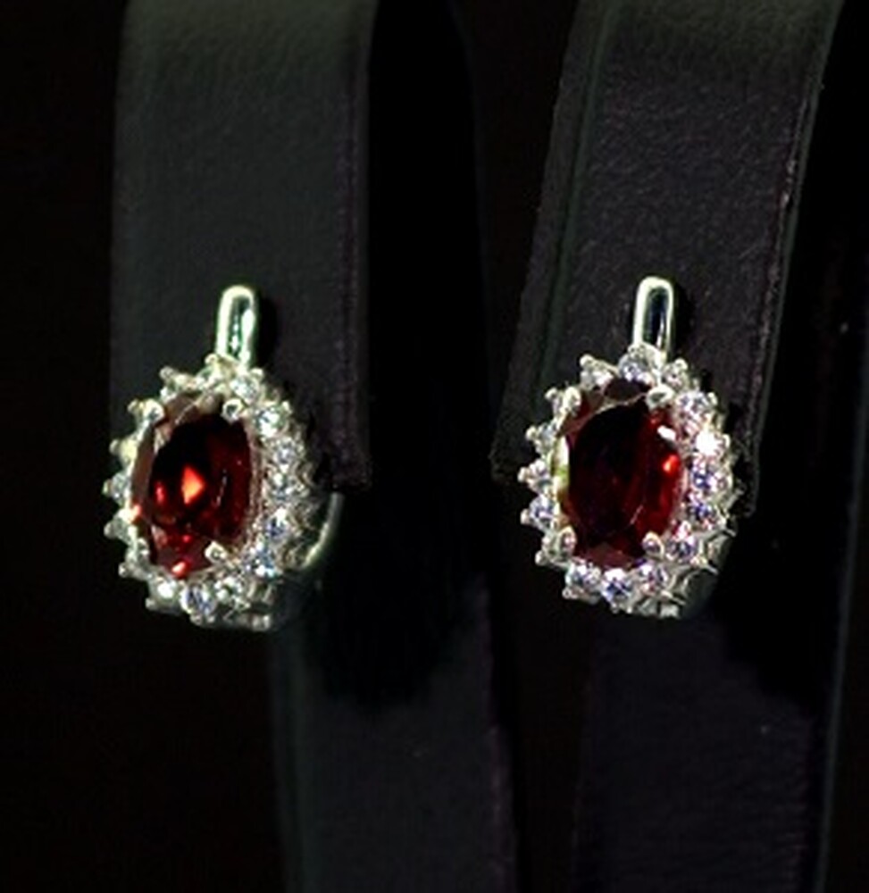 Серебряные серьги 925 пробы 3,21 г с чеськими Гранатами и фианитами 2,32 карат