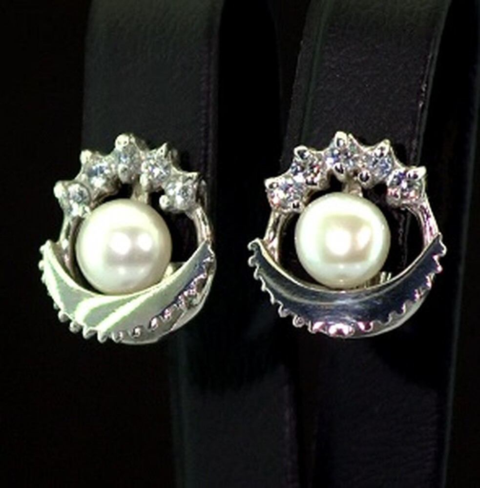 Серебряные серьги 925 пробы 4,5 г с Перлинами и цирконами 3,2 карат