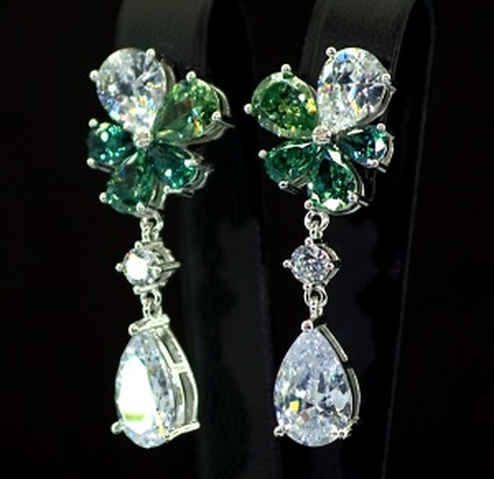 Серебряные серьги 925 пробы 11 г с Олександритами и фианитами 14,05 карат