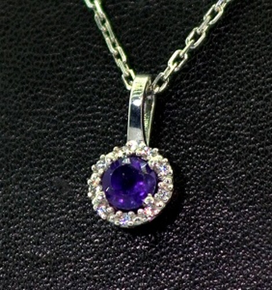 130850Серебряное колье 925 пробы 2,65 г с бразильским Аметистом и фианитами 0,58 карат 130850 3772₴ 1886₴1 BTQ Проба Серебро 925Серебро