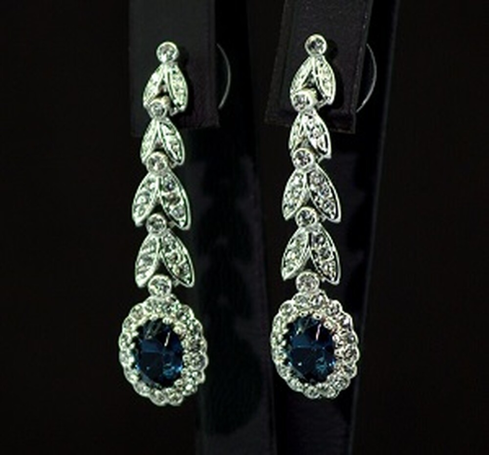 Комплект у покрытии родием з синими та белыми фианитами: колье, браслет, серьги 2 пари