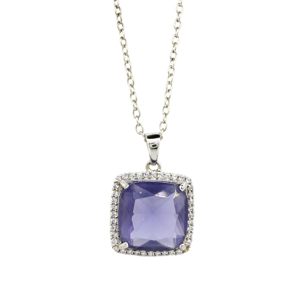 Подвеска с платиновым покрытием 850 пробы с пурпурным и белым кристаллами 9,19 карат
