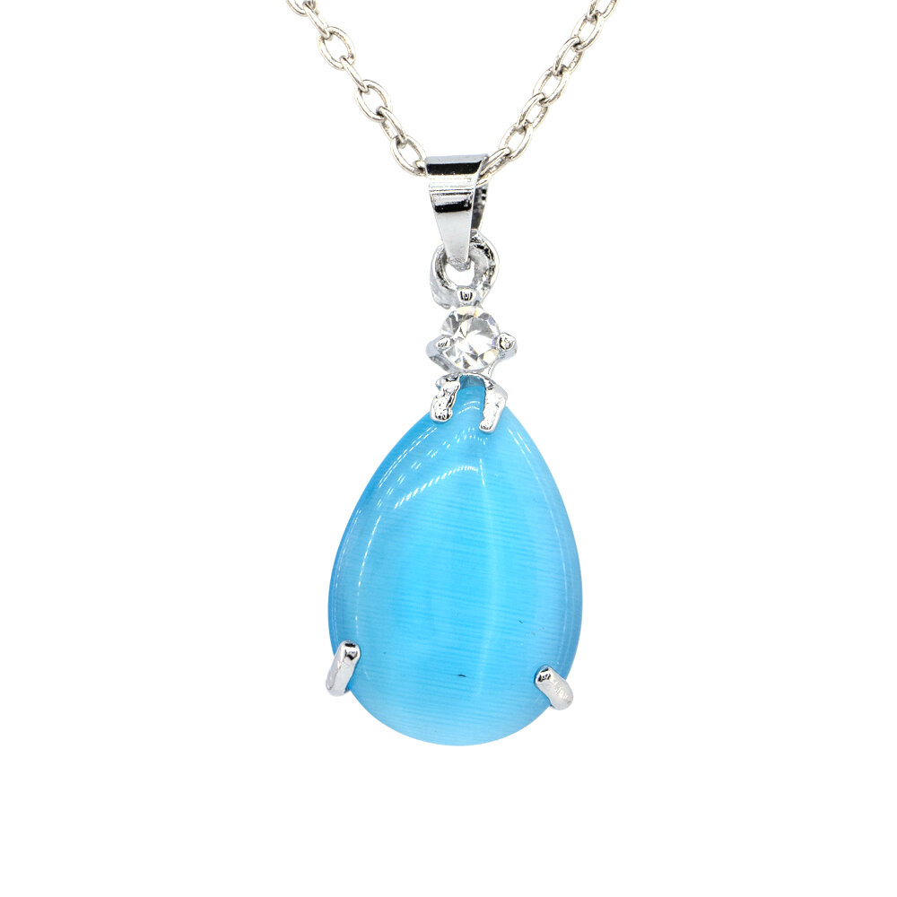 Подвеска капля 2,04г с лазурным каменм кошачий глаз 10,2 карат в покрытии родием
