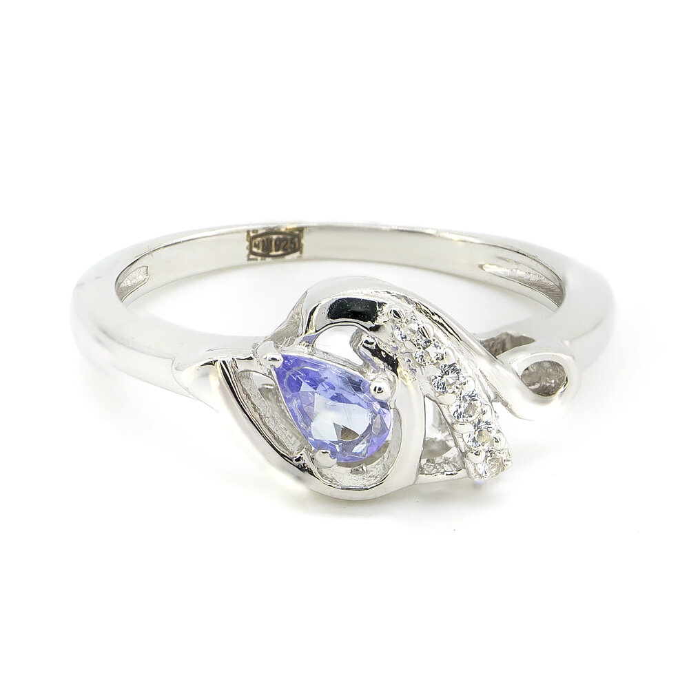 Серебряное кольцо 925 пробы 2,28 г с танзанитом класса АААА и белыми топазами с США 0,22 карат