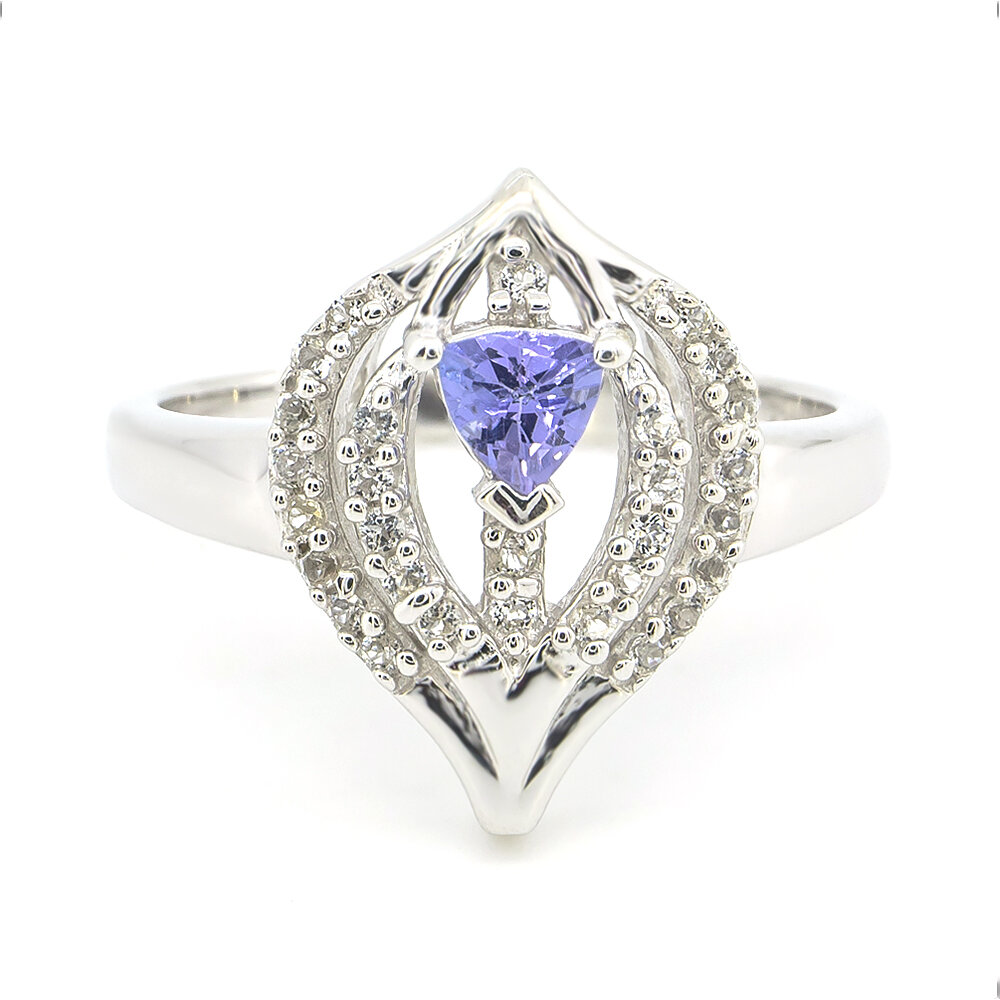 773415Серебряное кольцо 925 пробы 3,16 г с танзанитом класса АААА и белыми топазами с США 0,43 карат 773415 4314₴ 2157₴1 Размер- 16
