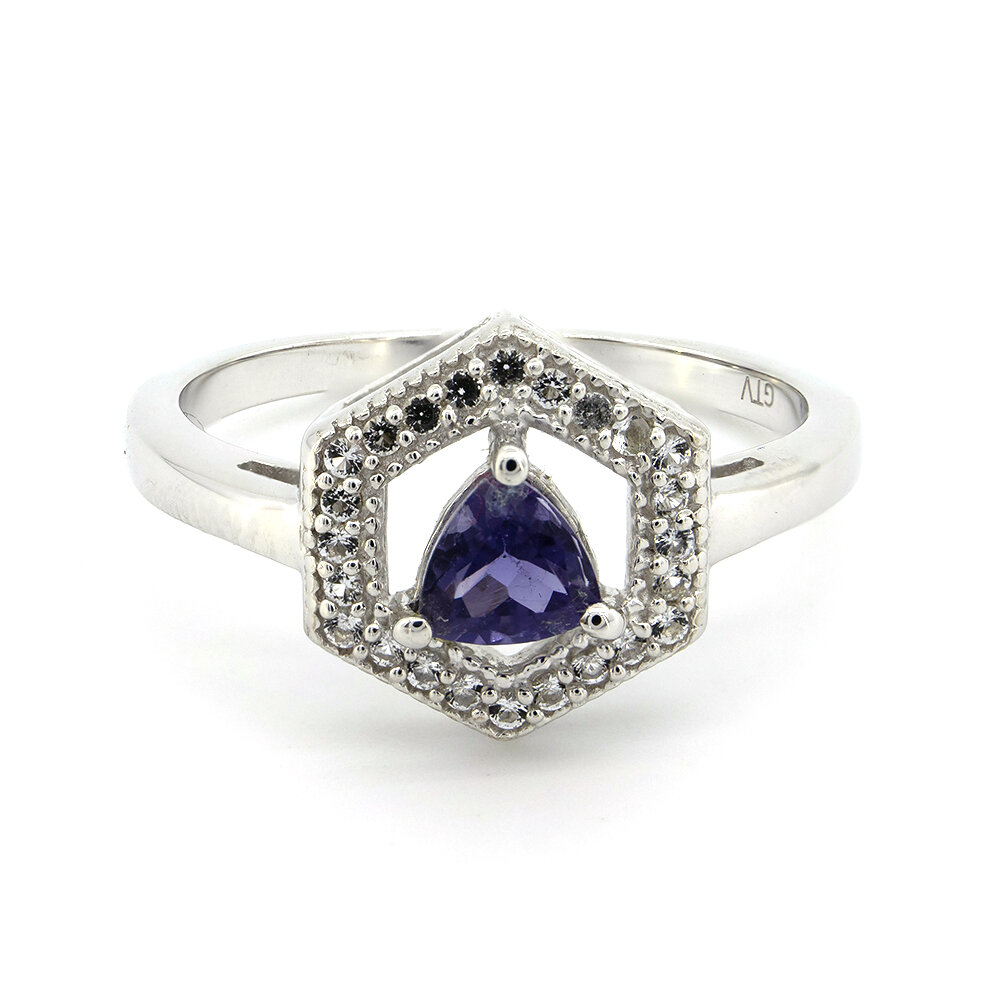 Серебряное кольцо 925 пробы 3,02 г с танзанийским иолитом и белыми топазами с США 0,54 карат