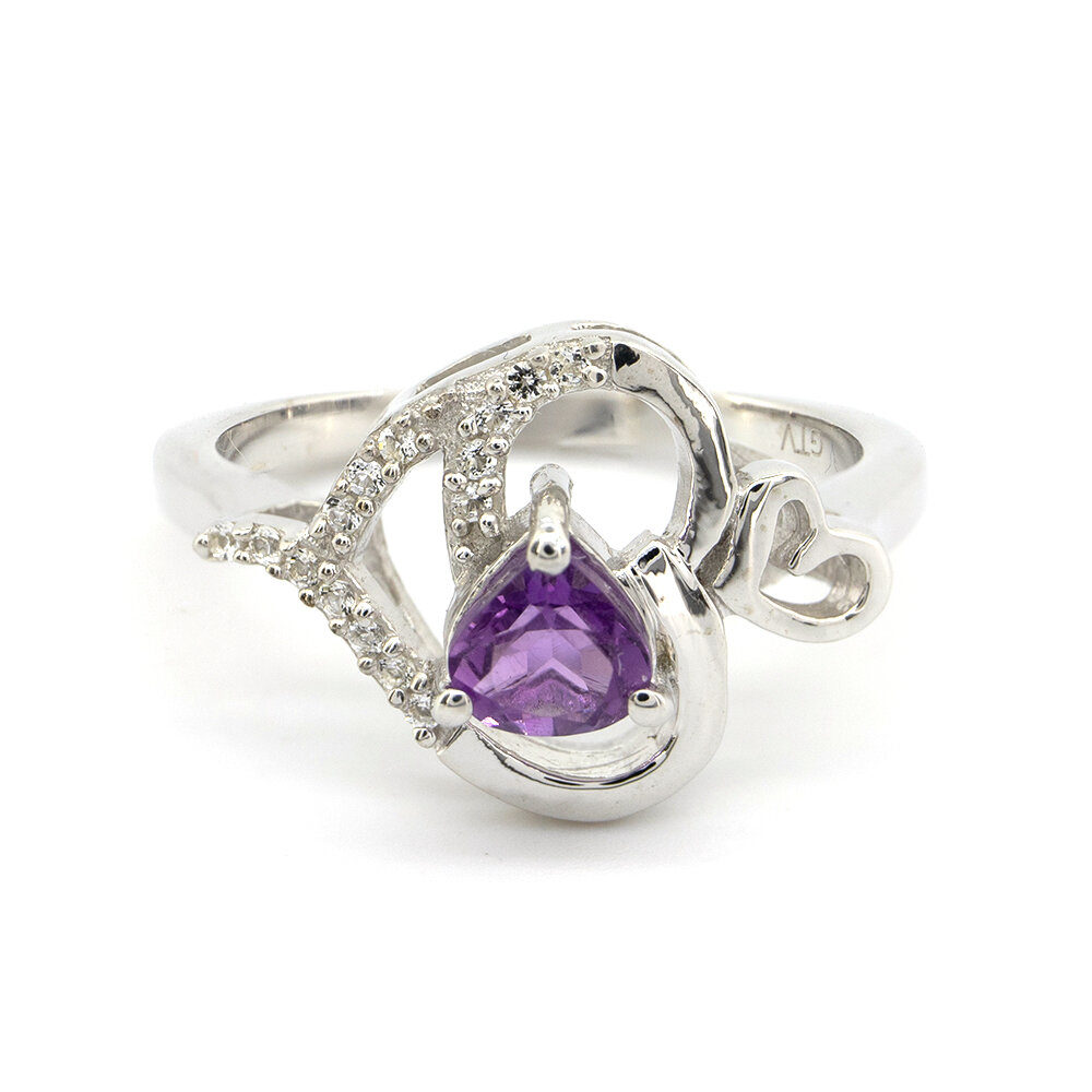 Серебряное кольцо 925 пробы 3,13 гр. с бразильским аметистом и белыми топазами с США 0,46 карат