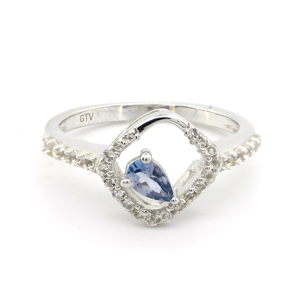 Серебряное кольцо 925 пробы 2,46 гр. с танзанитом Маньяра класса АААА и белыми топазами с США 0,51 карат