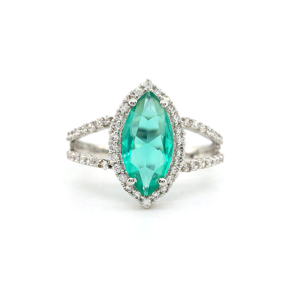 Кольцо с платиновым покрытием 850 пробы с зеленым и белым кристаллами 3,92 карат
