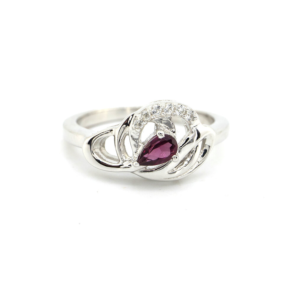 Серебряное кольцо 925 пробы 2,89 г с кенийским Родолит гранатом класса ААА и топазами из США 0,32 карат