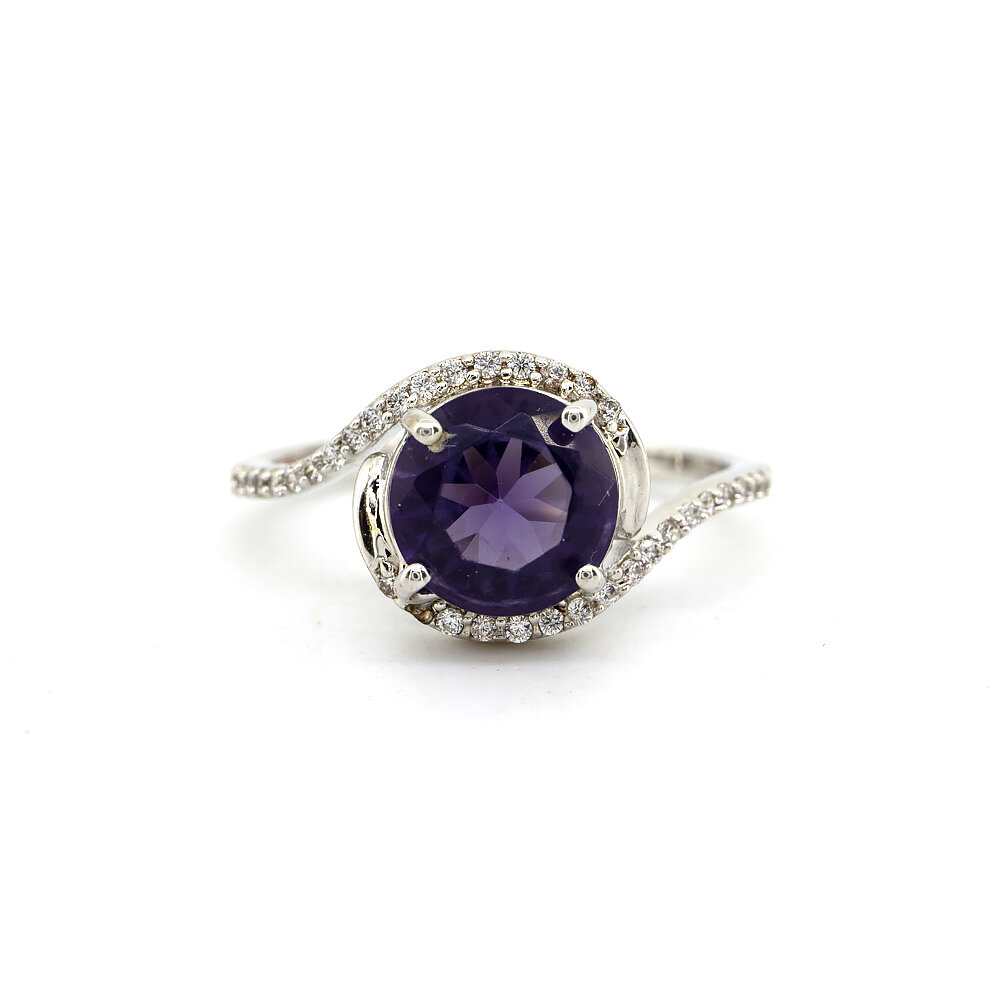 Кольцо с платиновым покрытием 850 пробы с пурпурным и белым кристаллами 2,95 карат