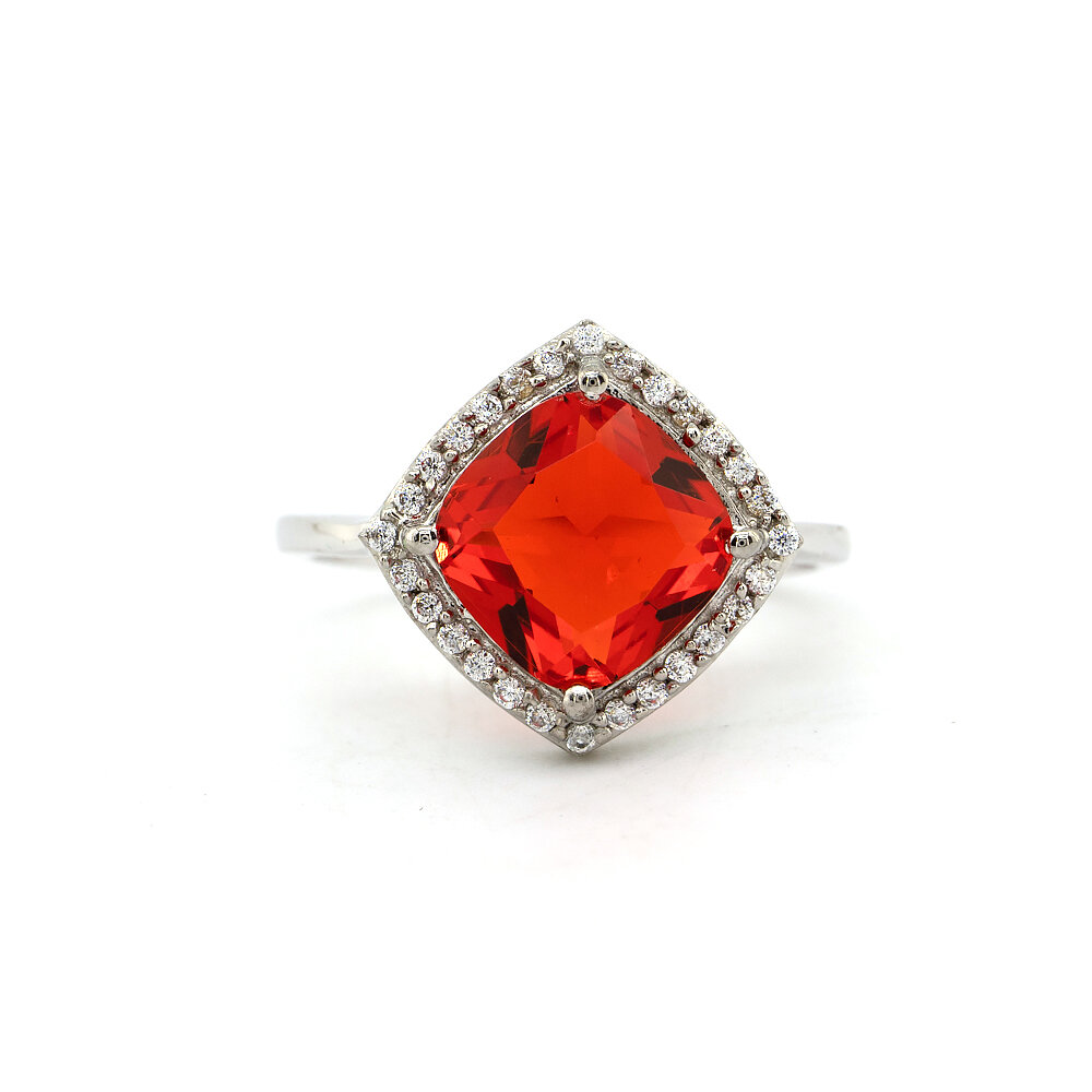 Кольцо с платиновым покрытием 850 пробы с красным и белым кристаллами 3,72 карат