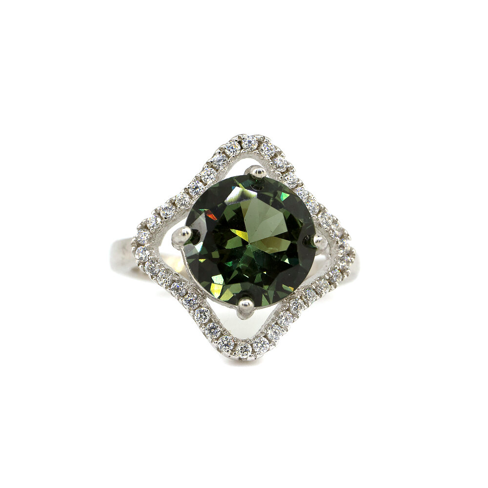 Серебряное кольцо 925 пробы 4,32 г с зеленым кварцем и цирконами 3,50 карат