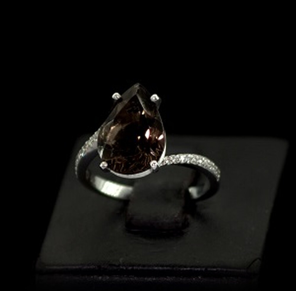 Серебряное кольцо 925 пробы 3,57 г с Раухтопазом та фианитами 4,42 карат