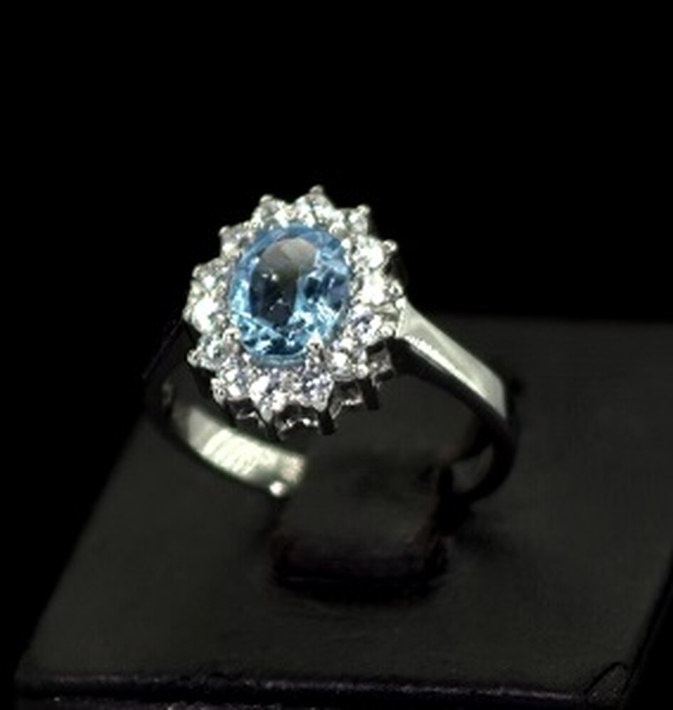 Серебряное кольцо 925 пробы 3,41 г с голубым Топазом и фианитами 2,32 карат