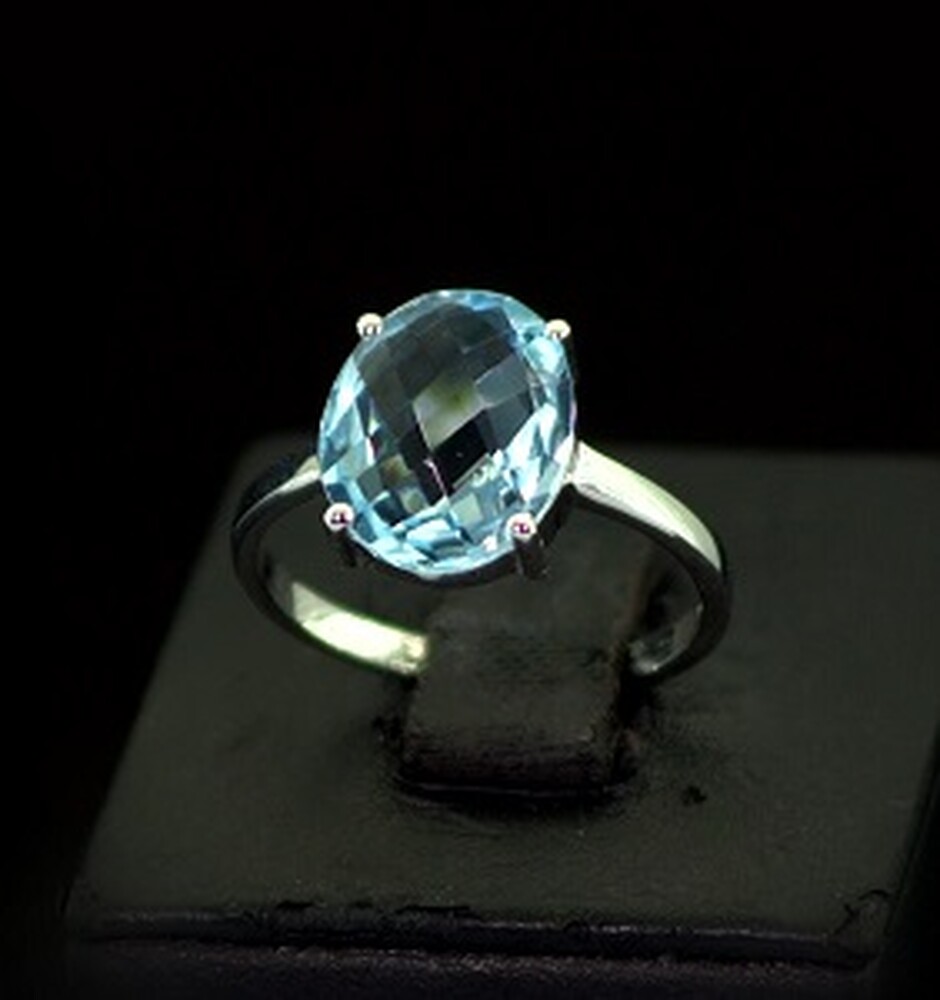 Серебряное кольцо 925 пробы 2,64 г с голубым Топазом 4,7 карат