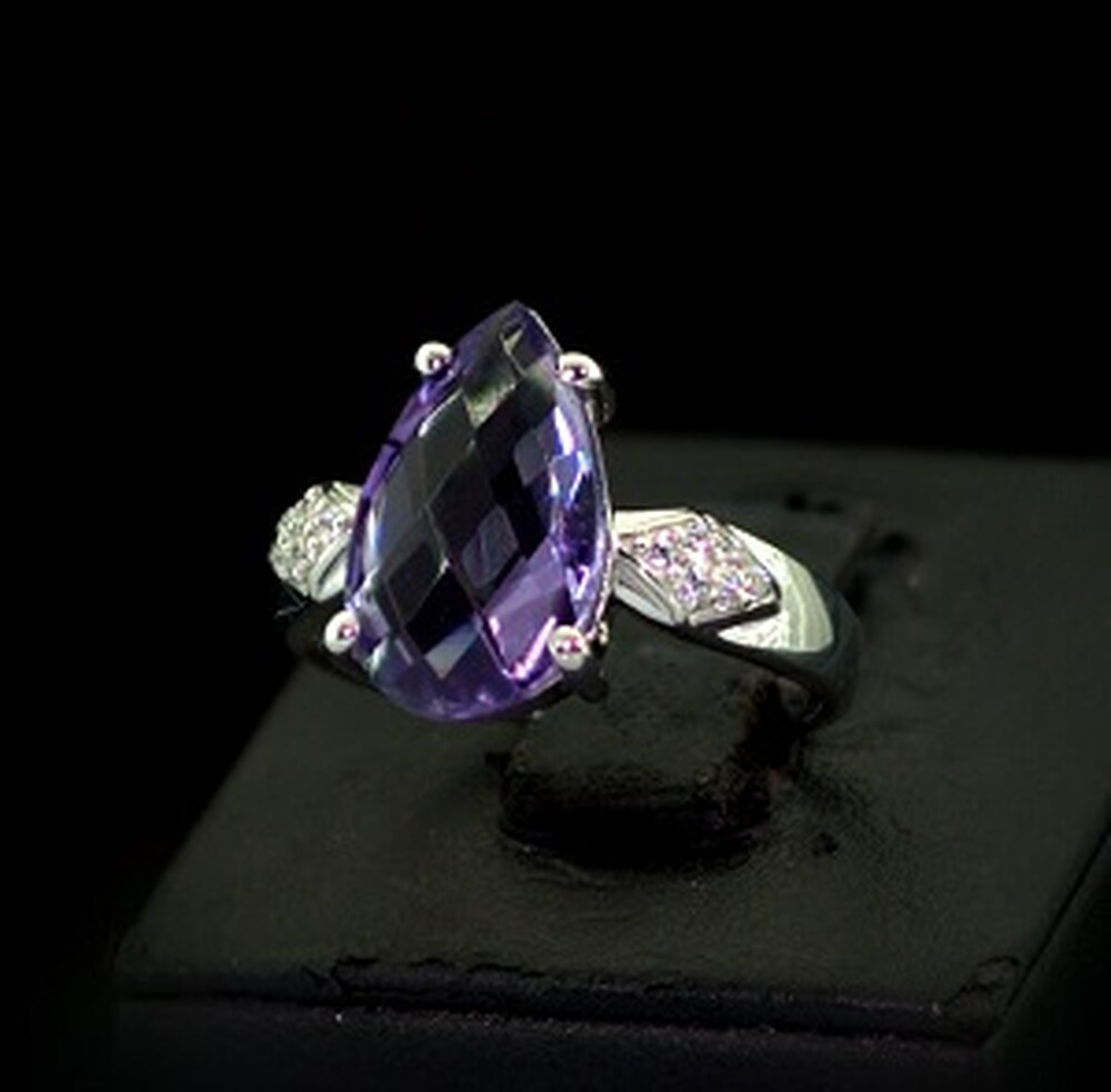 Серебряное кольцо 925 пробы 3,57 г с африканским Аметистом и цирконами 3,62 карат