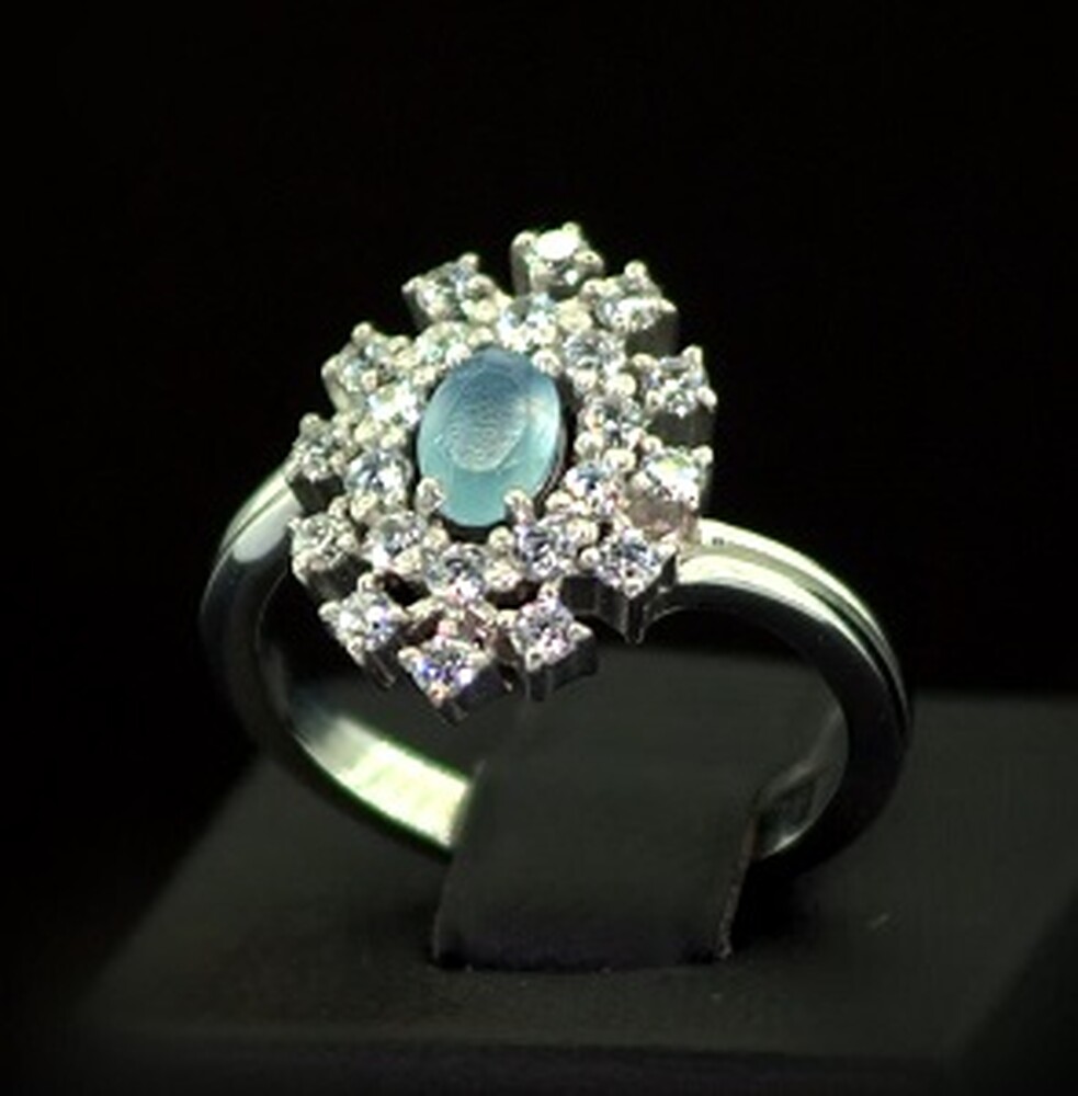 Серебряное кольцо 925 пробы 3,82 г с голубым Кварцем и фианитами 1,81 карат