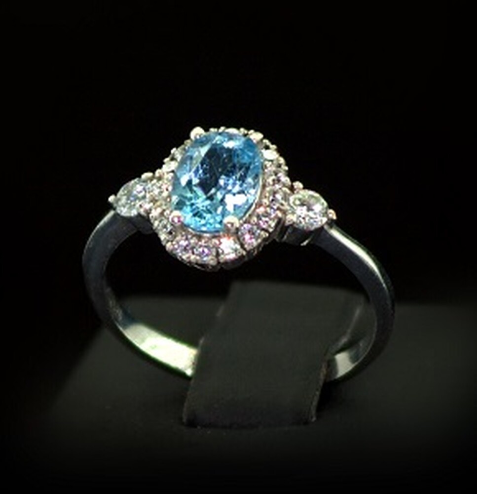 Серебряное кольцо 925 пробы 2,85 г с голубым Топазом и фианитами 2,22 карат