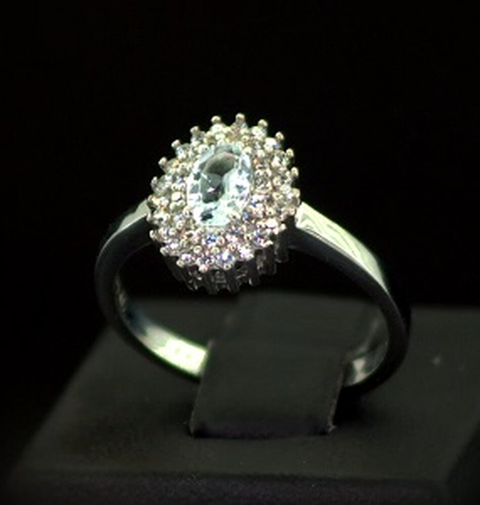 Серебряное кольцо 925 пробы 2,75 г с голубым Топазом и фианитами 0,94 карат