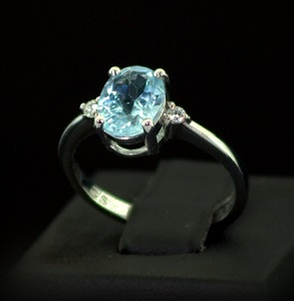 Серебряное кольцо 925 пробы 2,16 г с голубым Топазом и фианитами 2,13 карат
