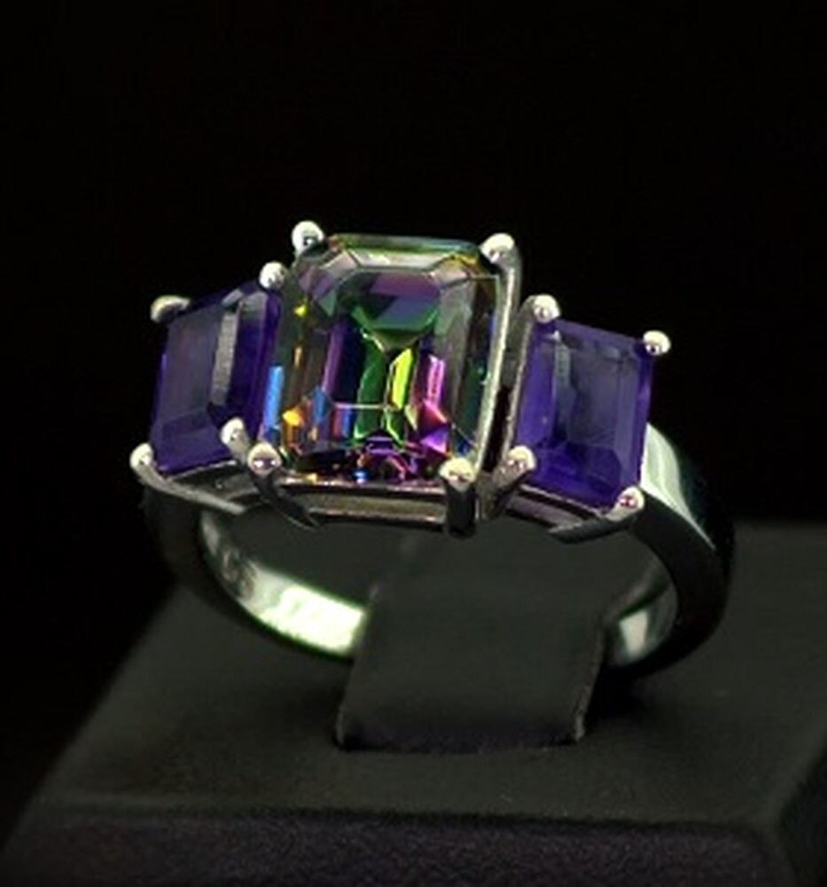 Серебряное кольцо 925 пробы 4,02 г с містичним Фіанітом и бразилькими аметистами 4,84 карат