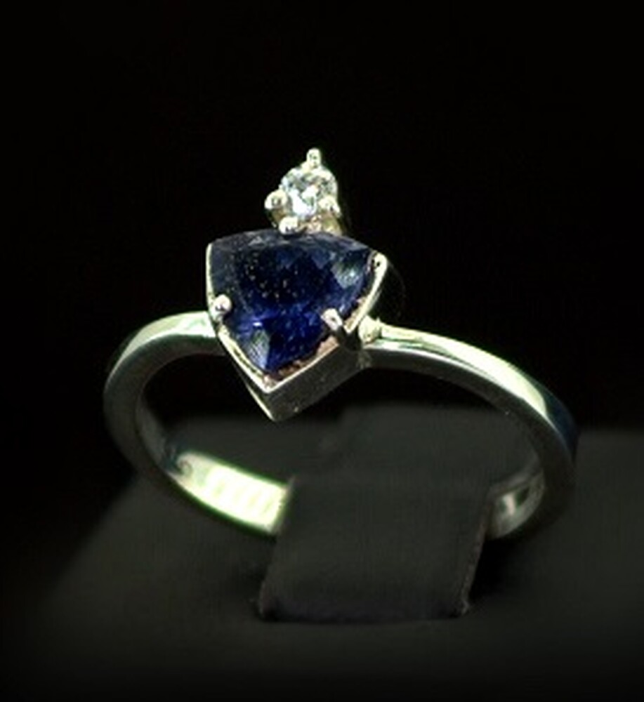Серебряное кольцо 925 пробы 2,5 г с Іолітом с М'янми и фіанітом 1,18 карат