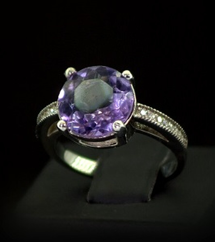Серебряное кольцо 925 пробы 4,31 г с бразильским Аметистом и фианитами 5,75 карат