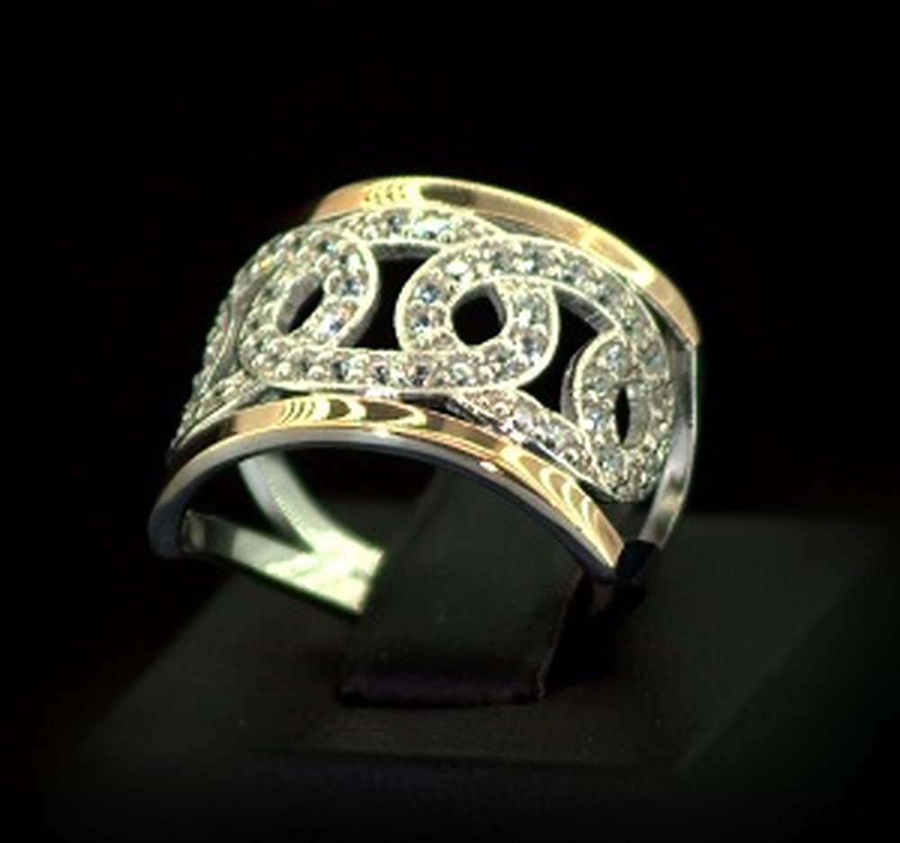 Серебряное кольцо 925 пробы с позолотой 375 пробы 5,07 г с белыми Фианитами 1,55 карат
