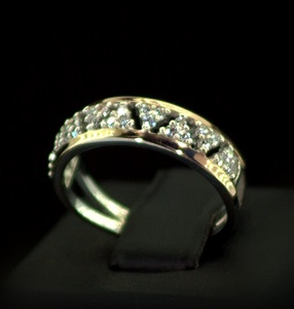 Серебряное кольцо 925 пробы с позолотой 375 пробы 2,26 г с белыми Фианитами 0,4 карат