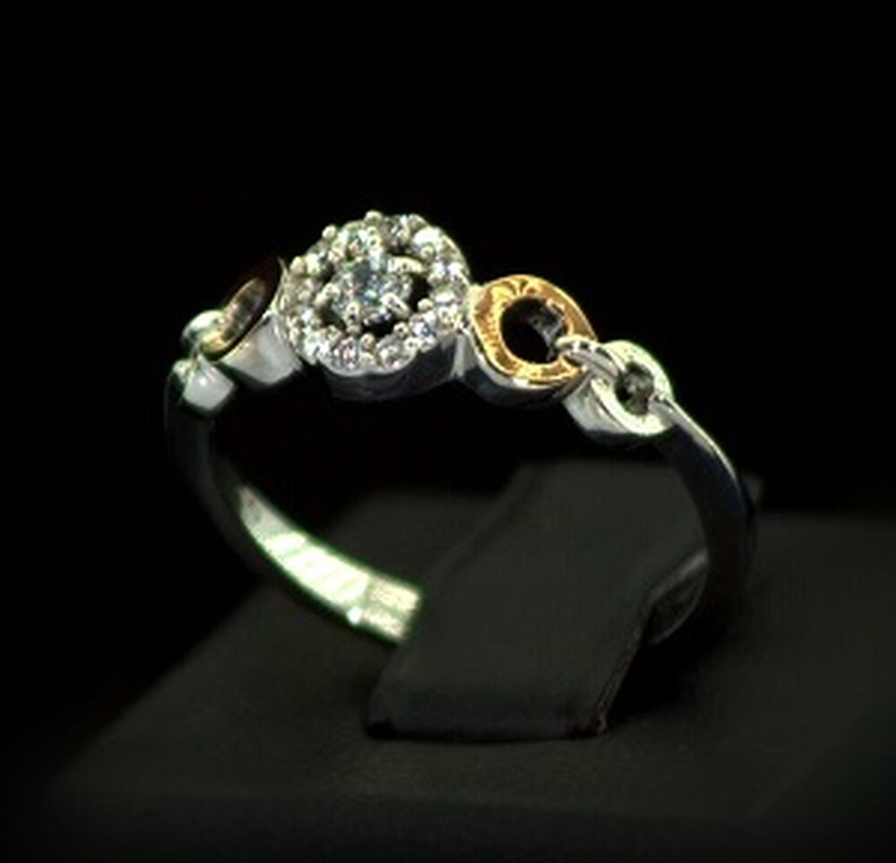 Серебряное кольцо 925 пробы с позолотой 375 пробы 2,33 г с белыми Фианитами 0,4 карат