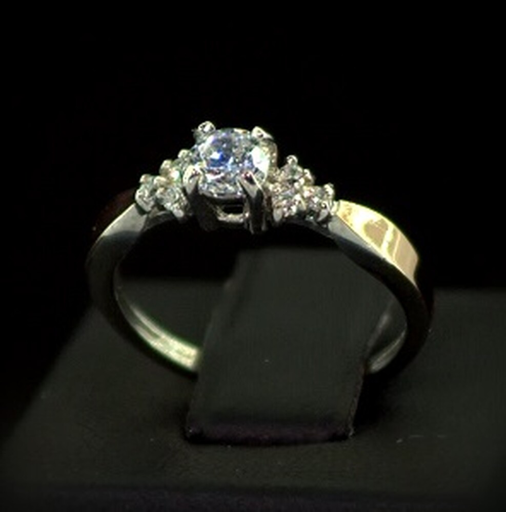 Серебряное кольцо 925 пробы с позолотой 375 пробы 1,95 г с белыми Фианитами 0,8 карат