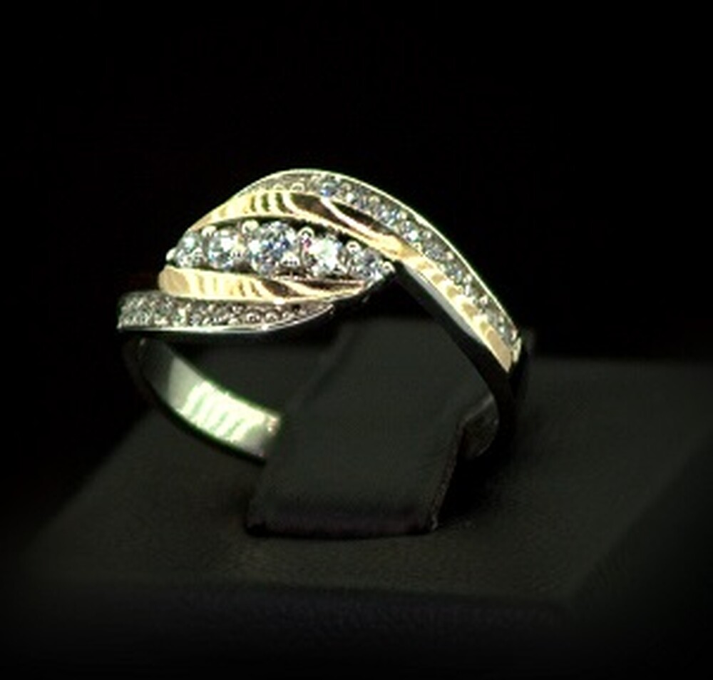 Серебряное кольцо 925 пробы с позолотой 375 пробы 2,37 г с белыми Фианитами 0,65 карат