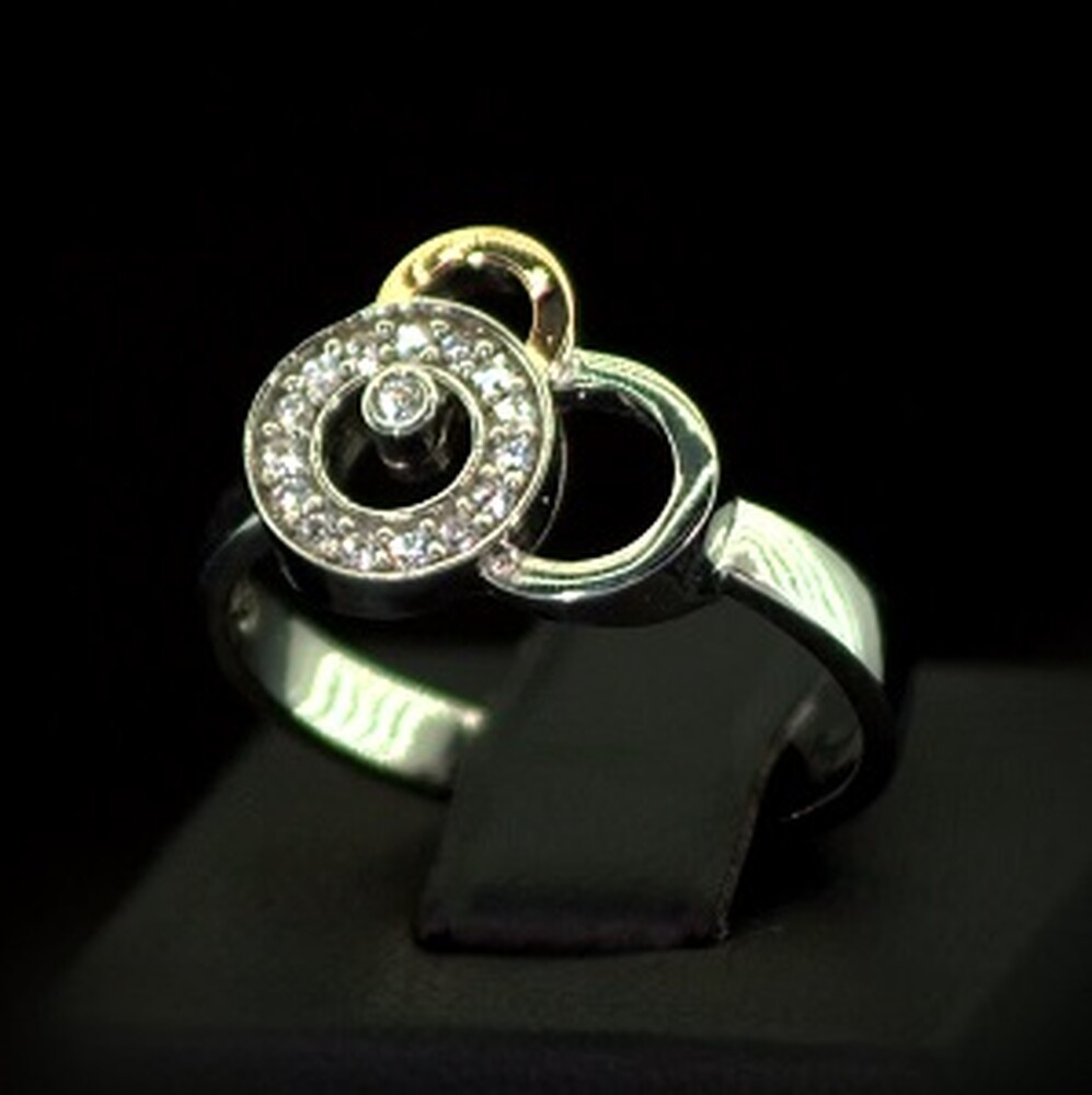 Серебряное кольцо 925 пробы с позолотой 375 пробы 3,52 г с белыми Фианитами 0,3 карат