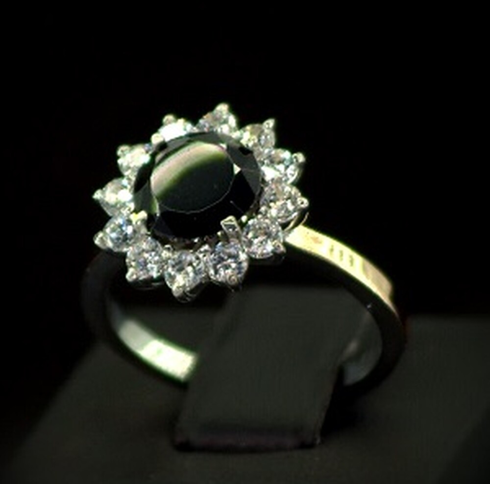 Серебряное кольцо 925 пробы с позолотой 375 пробы 4,97 г с черным та белыми Фианитами 5 карат