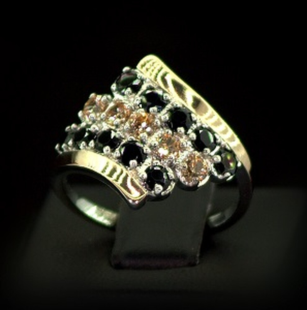 Серебряное кольцо 925 пробы с позолотой 375 пробы 4,34 г с желтыми та черными Фианитами 2,95 карат