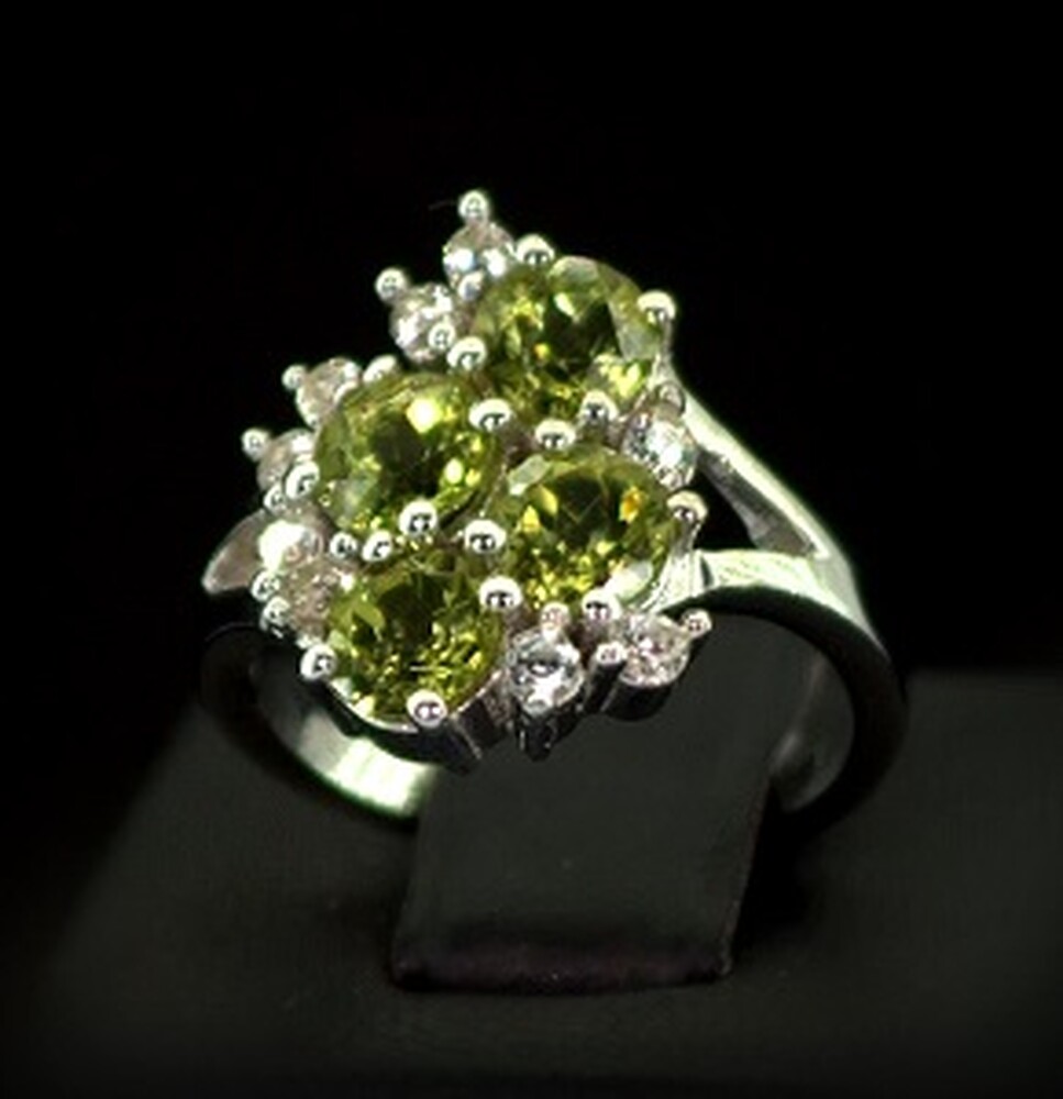 Серебряное кольцо 925 пробы 3,8 гр. с египетским Перидотом и топазами из США 2,25 карат